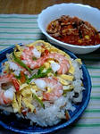 お隣さんからのお裾分けのちらし寿司。いつものトマトのスープを作ってる最中に頂いたのでこんな組み合わせに。
