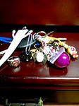 写真、わかるかな~?リングとかボックスとかのガチャで取ったもの。車のキーに付けてみたら重くなったので外そうと…。