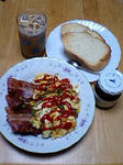 些細なことですが、何となく食べにくい?と思ってお皿を回してベーコンを右、玉子を左にしてみたら食べやすくなった。ほんとに細かい奴ですね…。