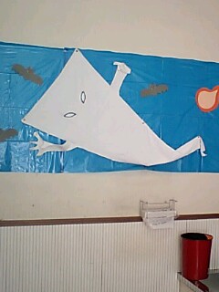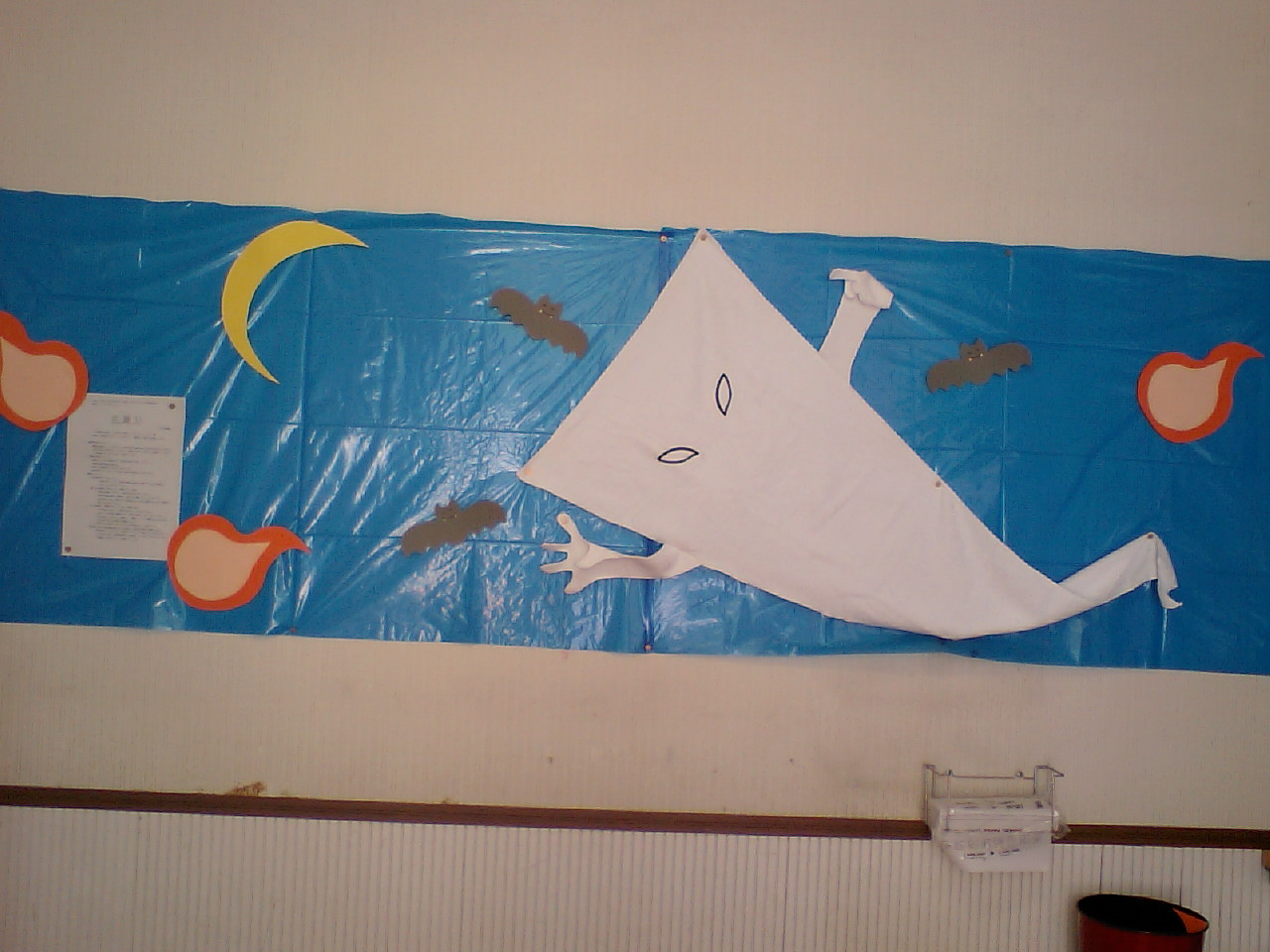 いただきものの一反木綿タオルをクラスの壁面に使ってみました。